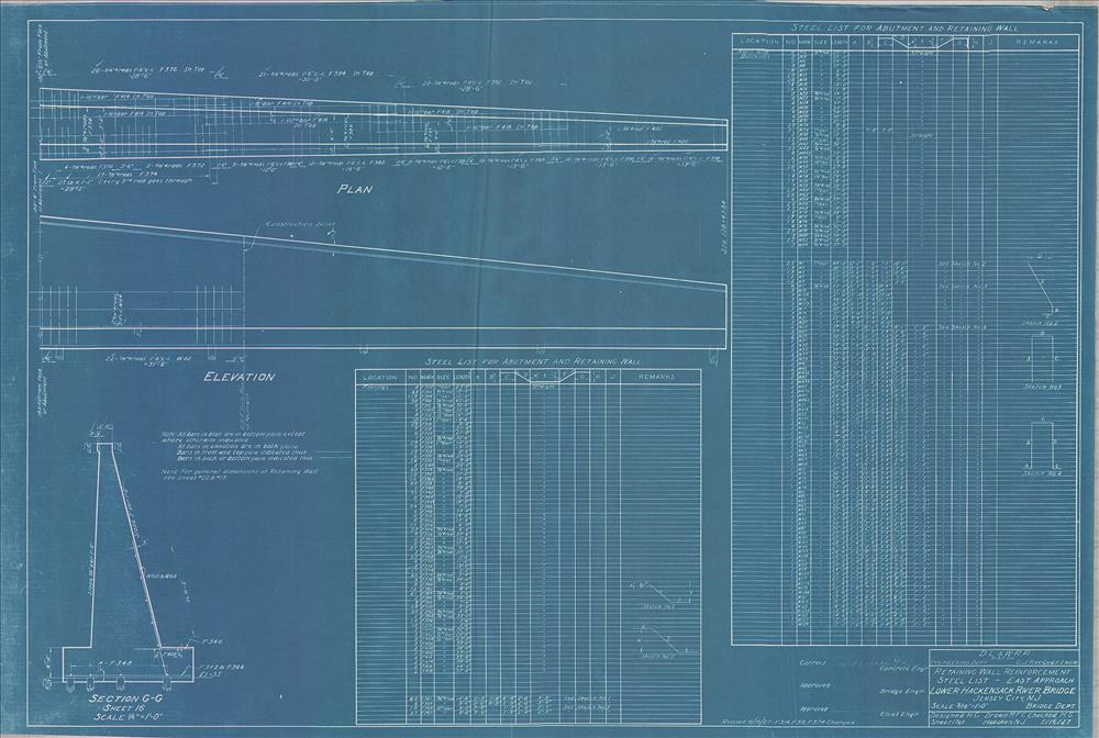 017 Lower Hackensack River Bridge--Retaining wall reinforcement steel list--East approach--Jersey City, NJ [1927.05.16] Sheet no. 17
