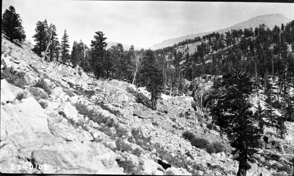 High Sierra Trail Investigation, further study may find a way to eliminate switchback up last bench on Wallace Creek. Beautiful falls in gorge at this point. Subalpine Forest Plant Community.
