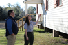 Superintendent Laura Waller points out future project using Great American Outdoors Act funds on Darrah Hall to National Park Service Director Chuck Sams.