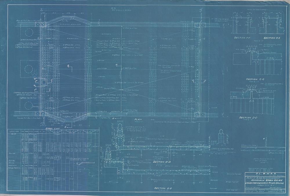 030 Lower Hackensack River Bridge--Plan of slab reinforcement--Approach span 3W--4W--Jersey City, NJ [1927.11.14] Sheet no. 30--Includes steel list