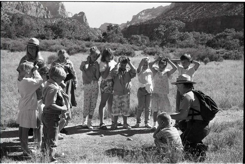 BW Photos of Junior Ranger Activities in Zion. ; ZION Museum and Archives Image 501_06_01027 ; ZION 15933