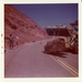 Image from car window of the Kolob Canyon Road with snow in the mountains. ; ZION Museum and Archives Image 002.12.07-2of24 ; ZION 15933