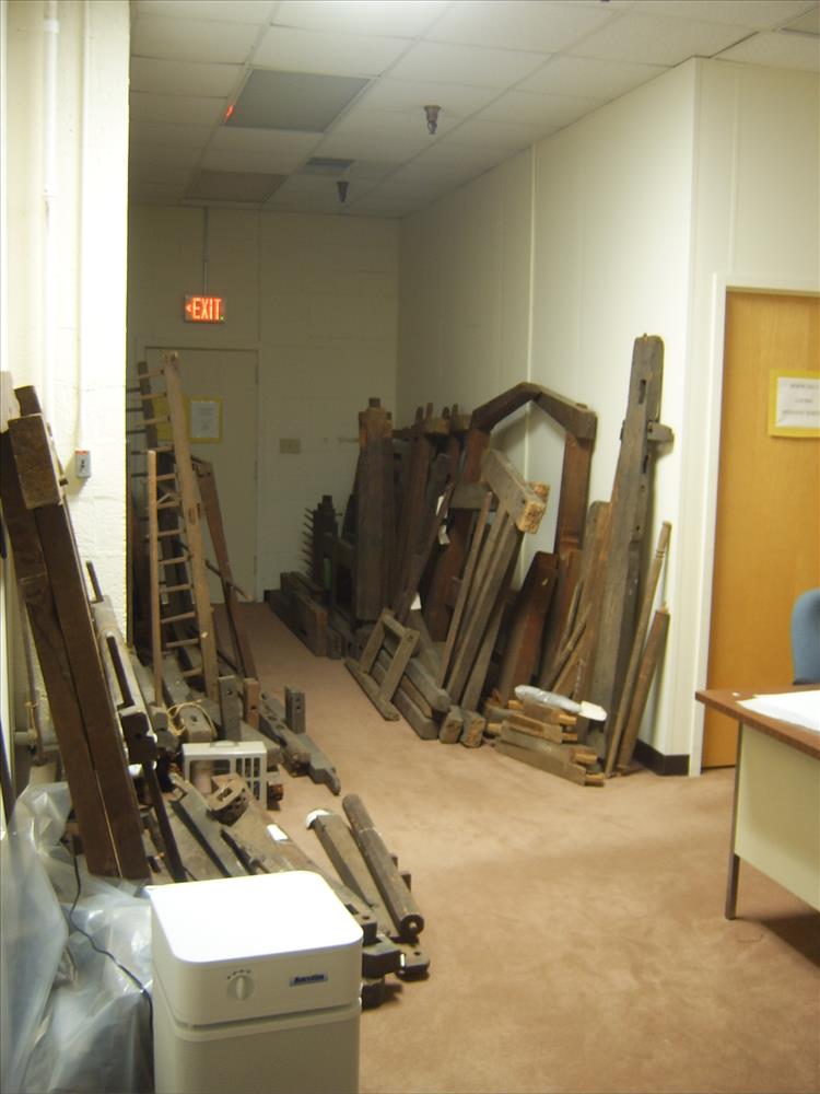 Photos of Park's museum collection taken by Deb Chory, Park Museum Technician. Museum collection shown as temporarily stored at Office of Science and Technological Information at Oak Ridge National Laboratories operated by Department of Energy. Photos show how museum collection/artifacts are not being stored according to standards. Space is limited in this storage facility as is evident in photos.