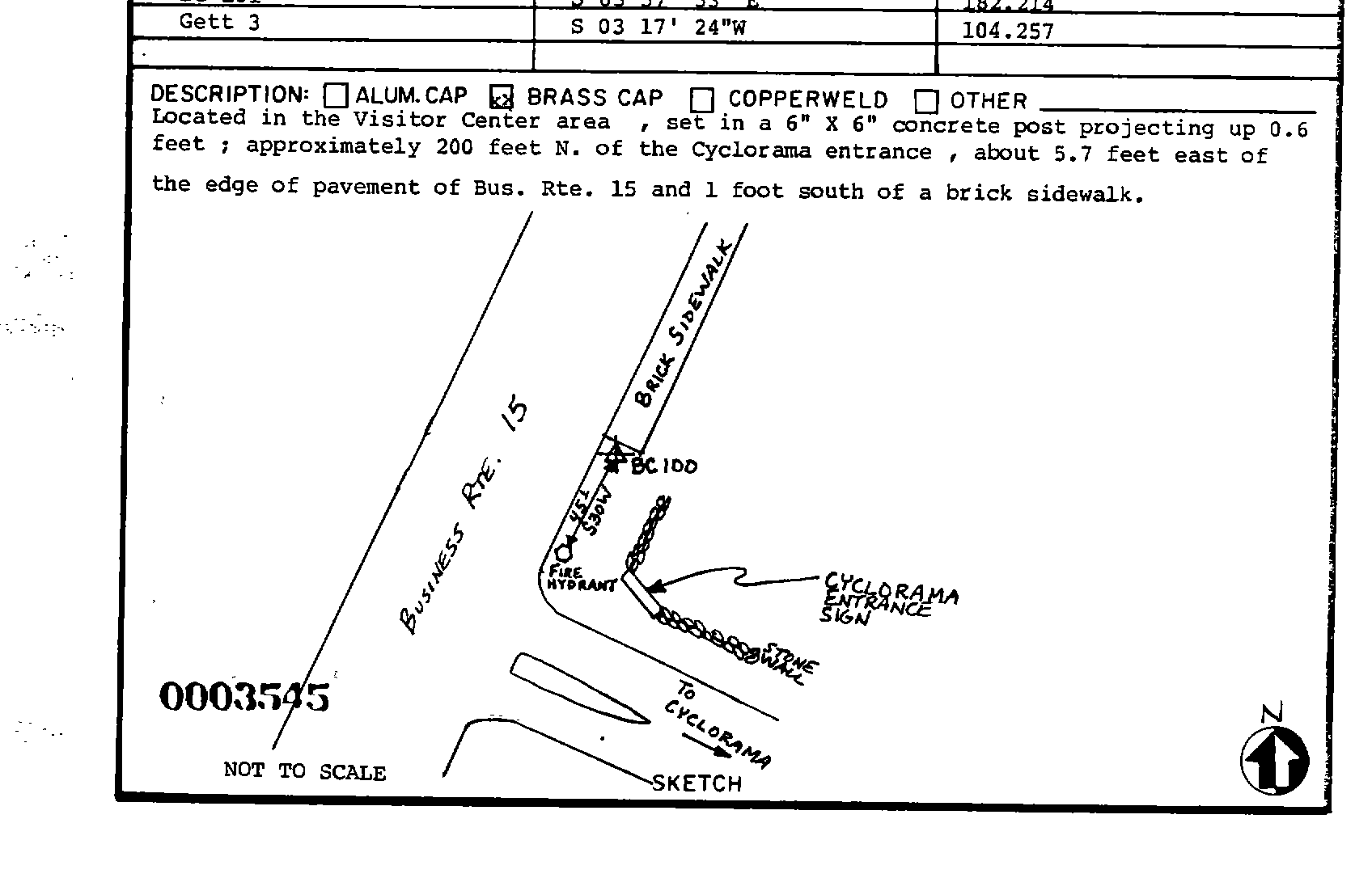 Survey monument record sheet, Sketch number: 00003545