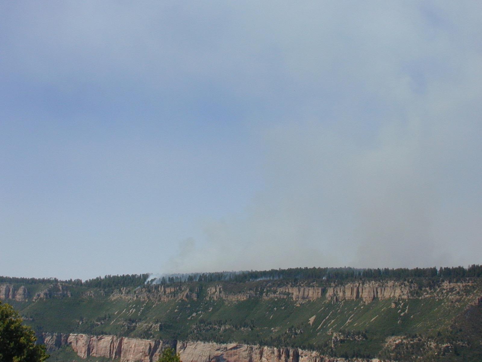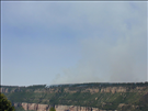Views of smoke and burning taken from Swamp Point observation area, June 26, 2003 during the Powell Fire. The Powell Wildland Use Fire, started by lightning June 15, 2003 and declared out on August 20, 2003, was located on the Powell Plateau on the North Rim of the Grand Canyon. It burned approximately 3,800 acres. The fire was a low intensity ground fire and progressed down the plateau, where it burned out.