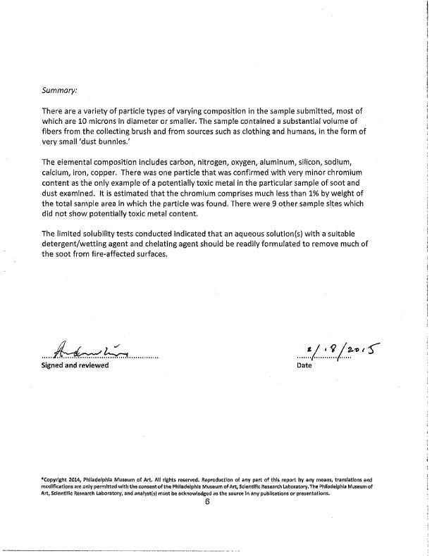 Museum collection condition assessments for soot damage following 2nd Bank fire