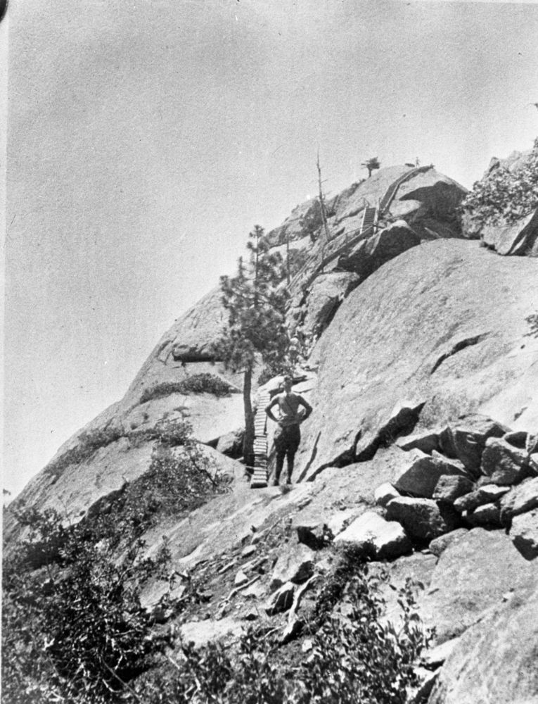 Unknown Photographer, Unknown Date, Giant Forest, SNP, Buildings and Utilities, wooden steps on Moro Rock. Individuals unidentified.