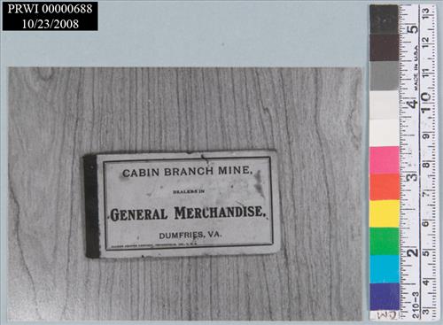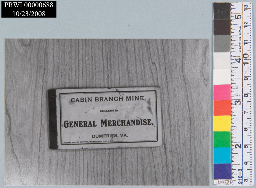 BLACK AND WHITE <CRFOREGROUND: CABIN BRANCH MINE GENERAL MERCHANDISE COUPON BOOKLET<CRBACKGROUND: WOOD GRAIN SURFACE