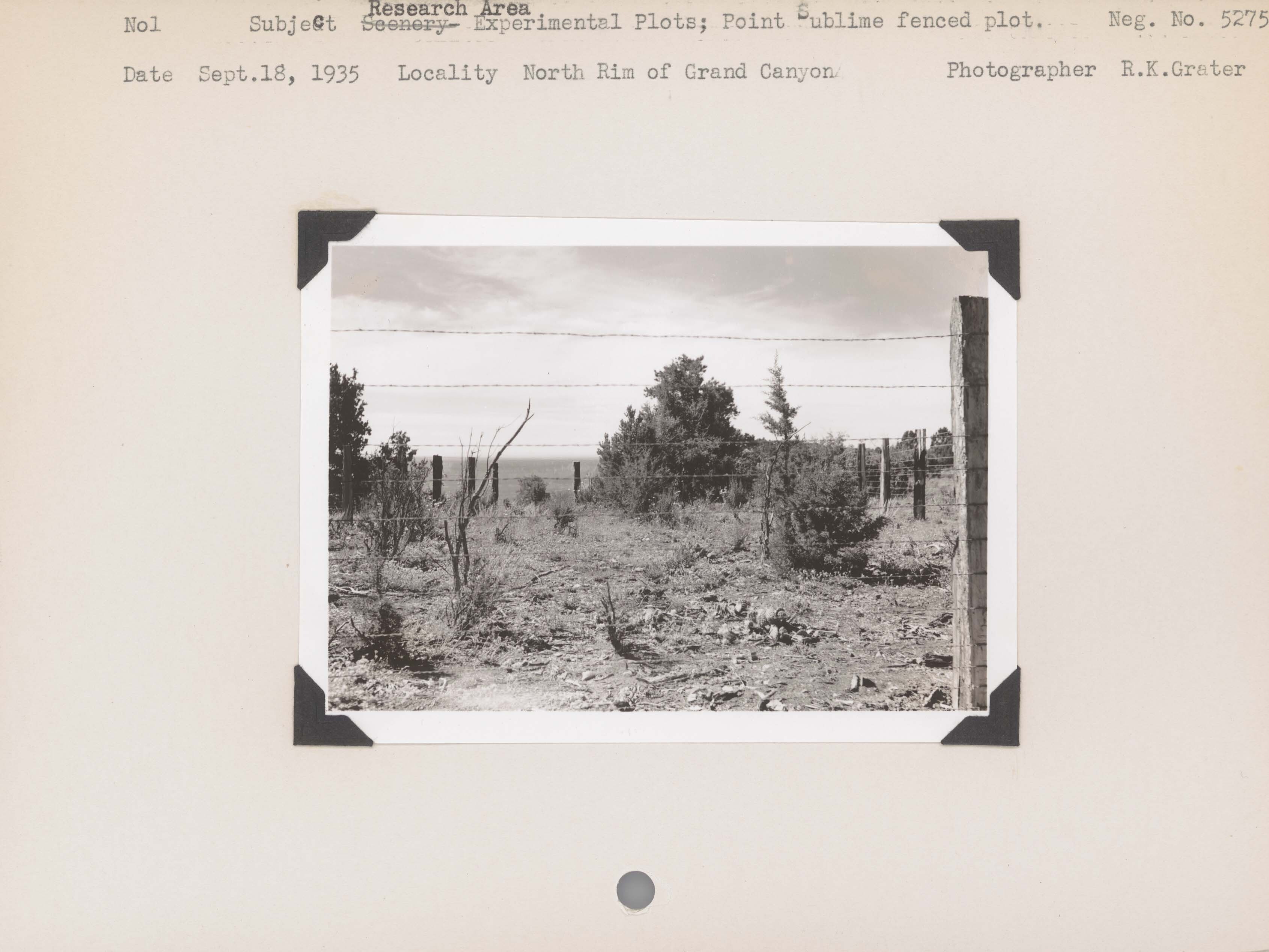 Research Area--Experimental Plots--Point Sublime fenced plot. Locality: North Rim of Grand Canyon National Park. Negative #: 5275