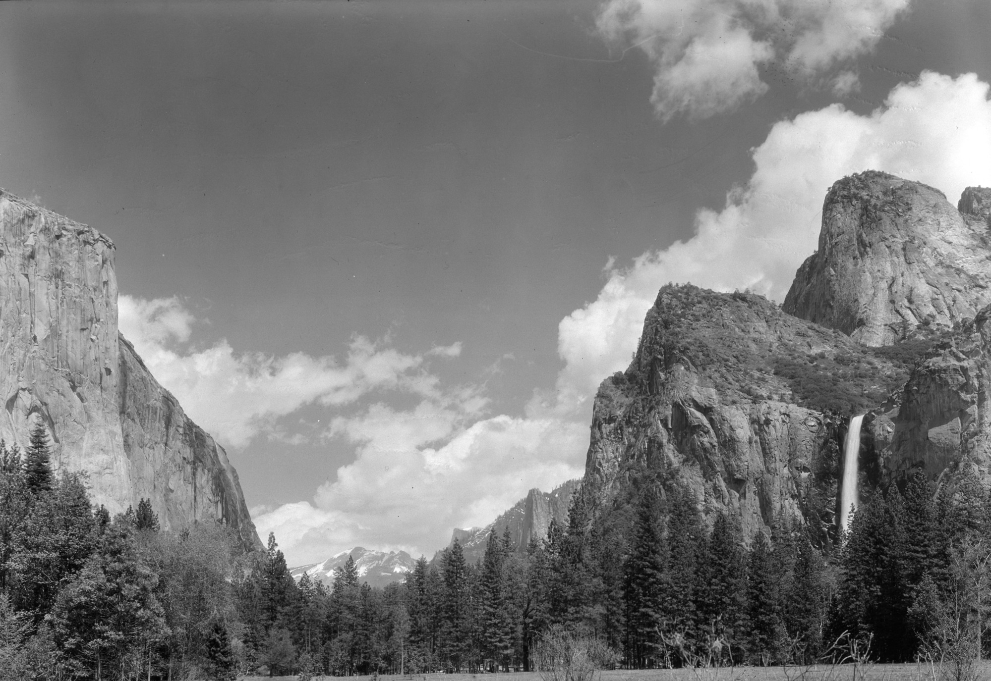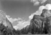 Copied by DC in 1935. Original taken by George Fiske. Clouds over Cathedral Rock. An interesting story is that Mr. Fiske was thrilled upon developing this negative to find the familiar face of a San Francisco friend outlined on the cloud in the center. "Wh