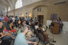 Groundswell Executive Director Amy Samaman presenting at the mural dedication