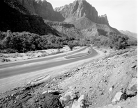 Park road from entrance to entrance station, South Entrance. ; ZION Museum and Archives Image 002_10001 ; ZION 7507