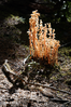 Coralroot and other mycoheterotrophs are unusual plants that don't create chlorophyll but get nutrients from relationships with fungi. They thrive in the shadowy understory of Mount Rainier's forest and can be commonly viewed along the Rampart Ridge Trail.