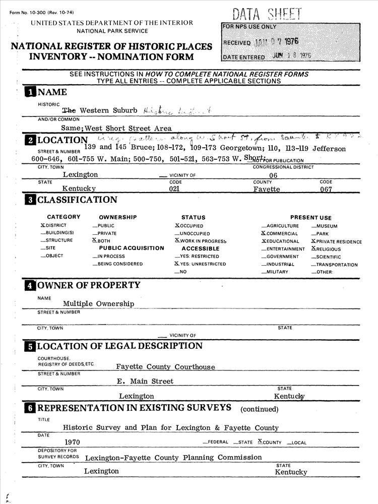 Lexington ; Irregular pattern along W. Short St. from Saunter to KY 922
