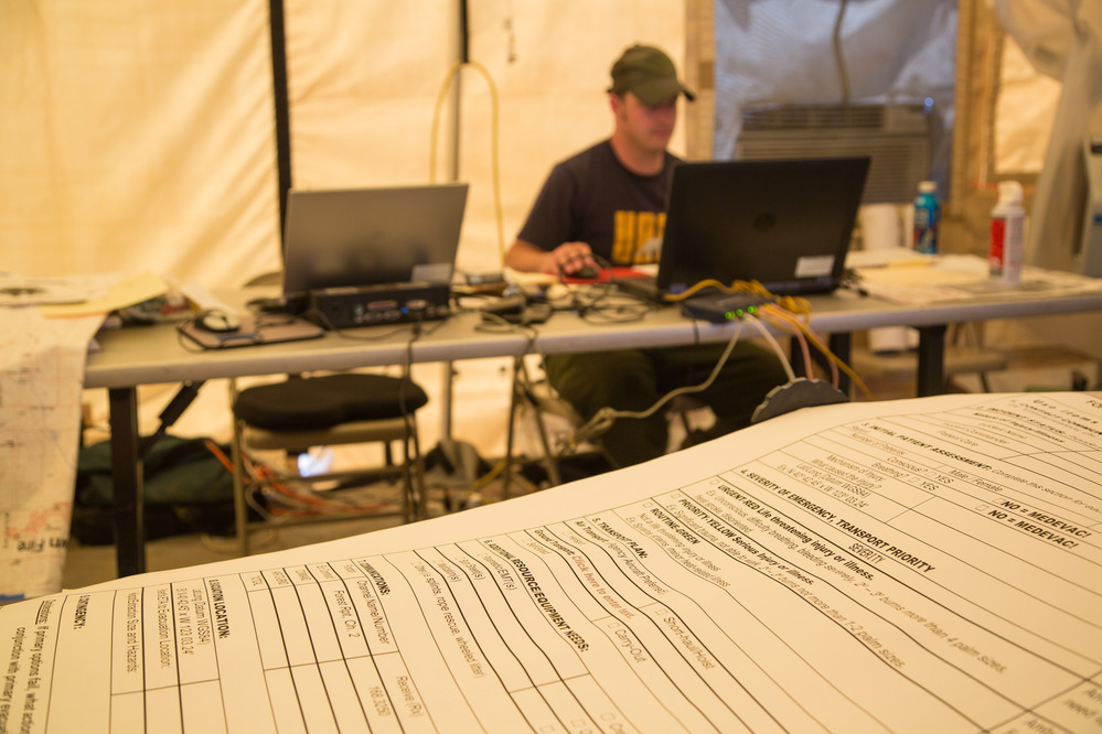 Inside the planning tent at the Maple Fire Incident Command Post. NPS/Neal Herbert