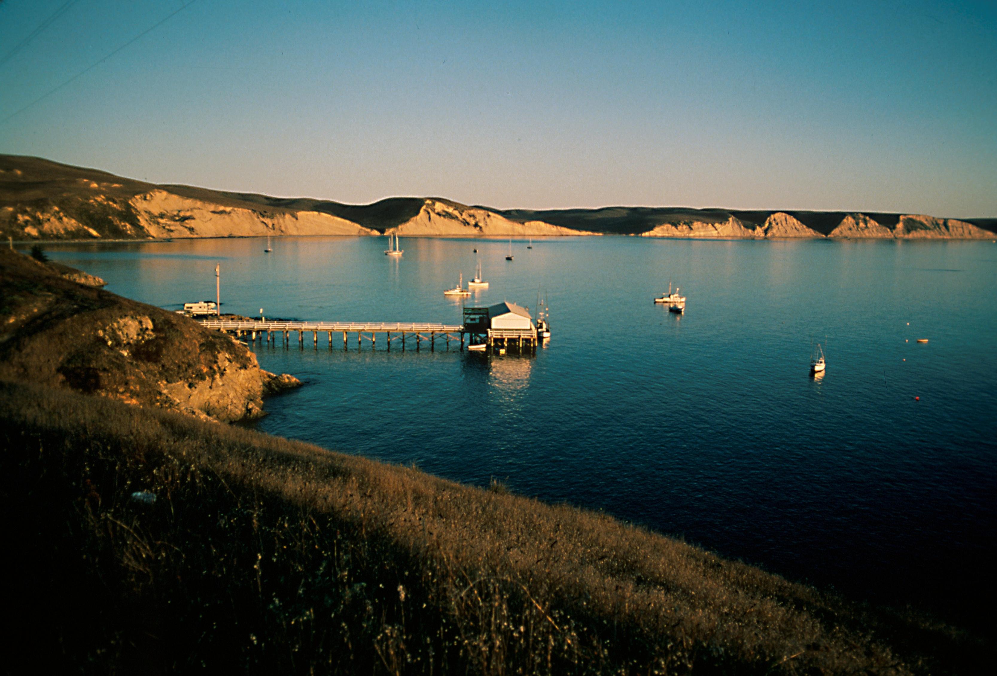 Sunset on shore of harbor from sea at Point Reyes National Seashore, Calif. in 1997