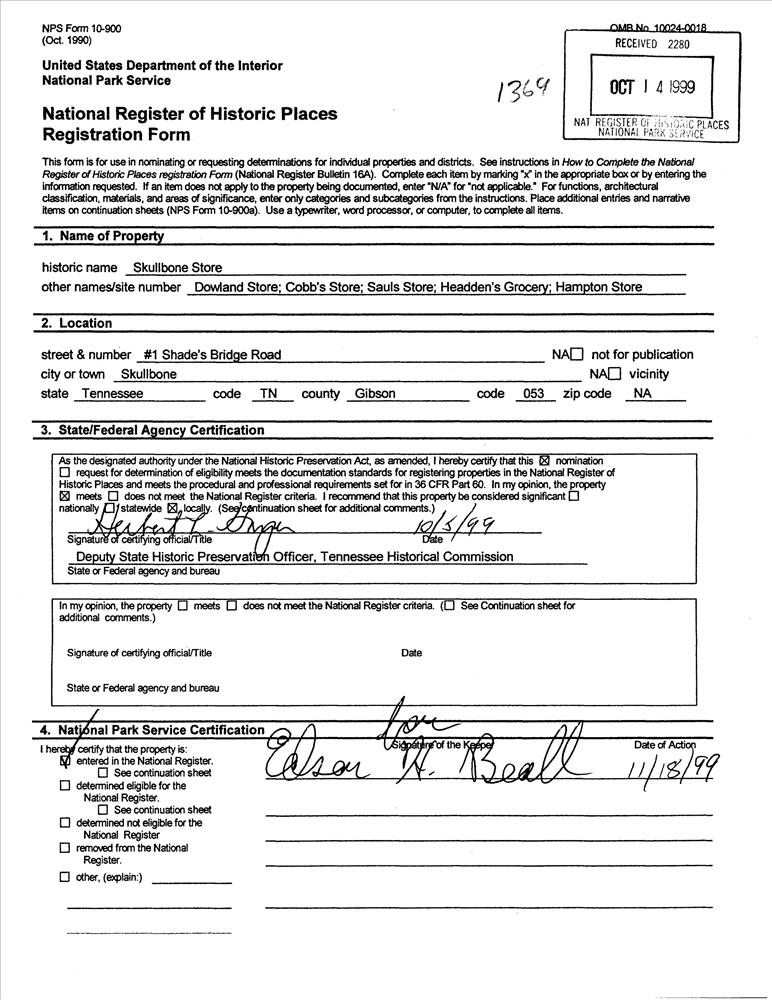 Skullbone ; 1 Shade's Bridge Rd.