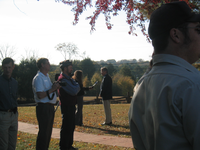 Media gather under a canopy of fall colors at the Chief Vann House Historic Site near Chatsworth, Georgia