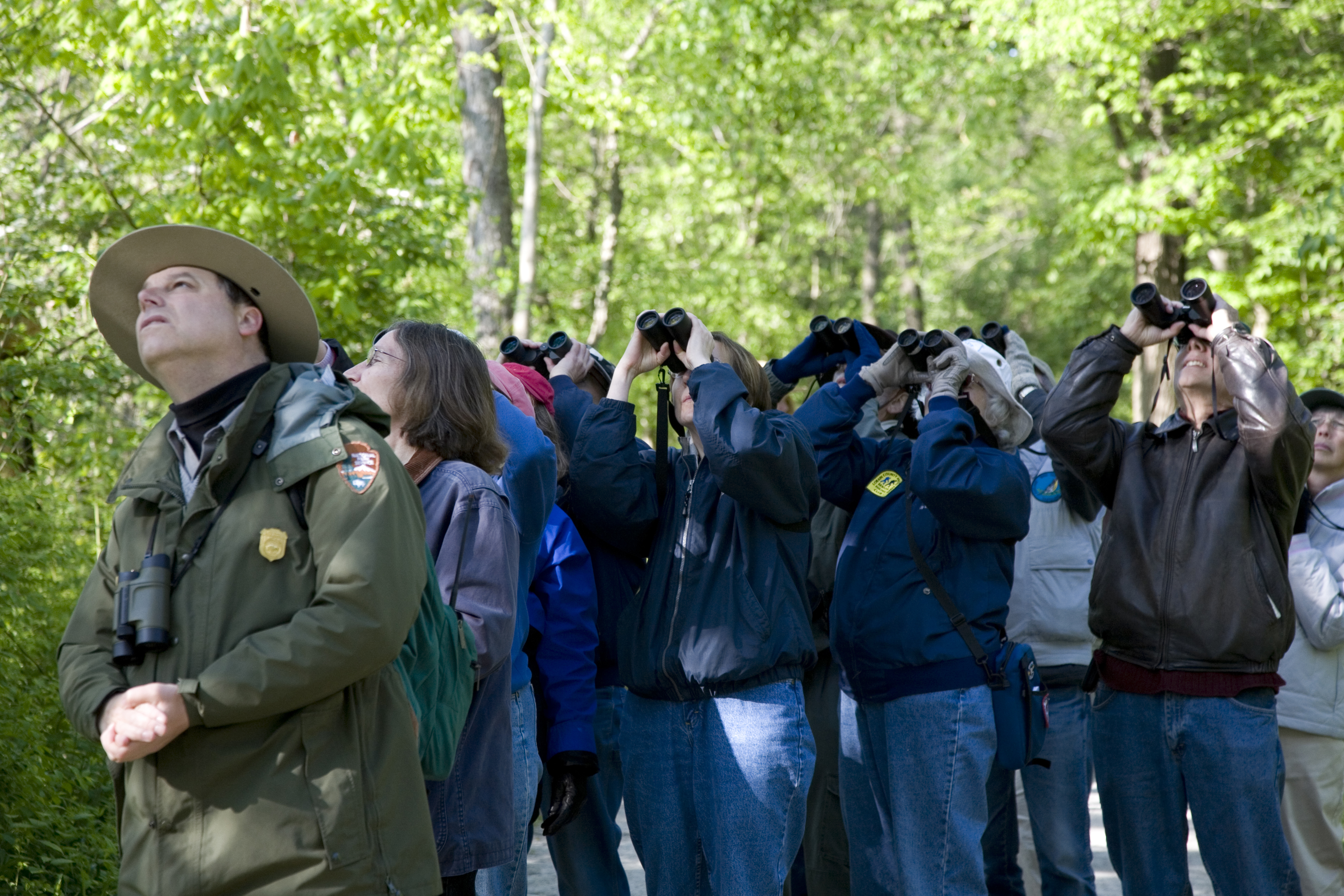Cuyahoga Valley National Park has been designated as an Important Bird Area (IBA) by the National Audubon Society and has long been recognized by birders as an ideal area for observing birds. There have been about 240 species documented in the park. || CVNP offers a variety of seasonal bird watching programs. This one is lead by Park Ranger Paul Motts and Park Volunteer Dwight Chasar. The group travels along the Towpath Trail to the Beaver Marsh, north of the Ira Trailhead.