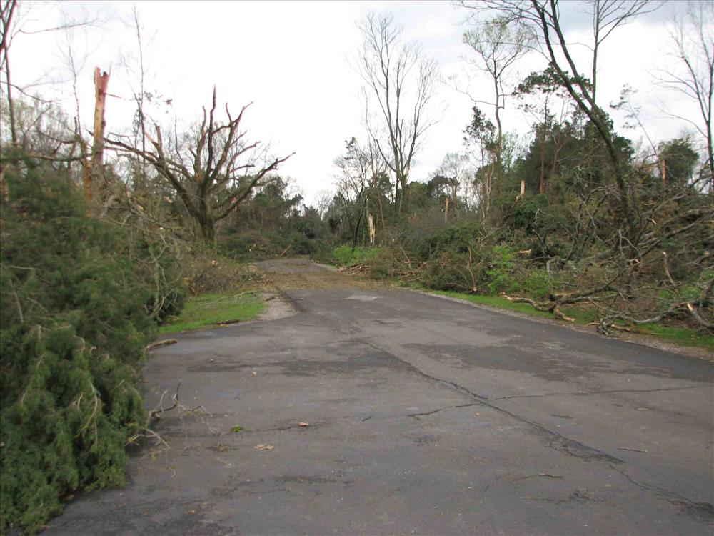 tornado debris (April 10, 2009) at Tour Stop 1 at STRI