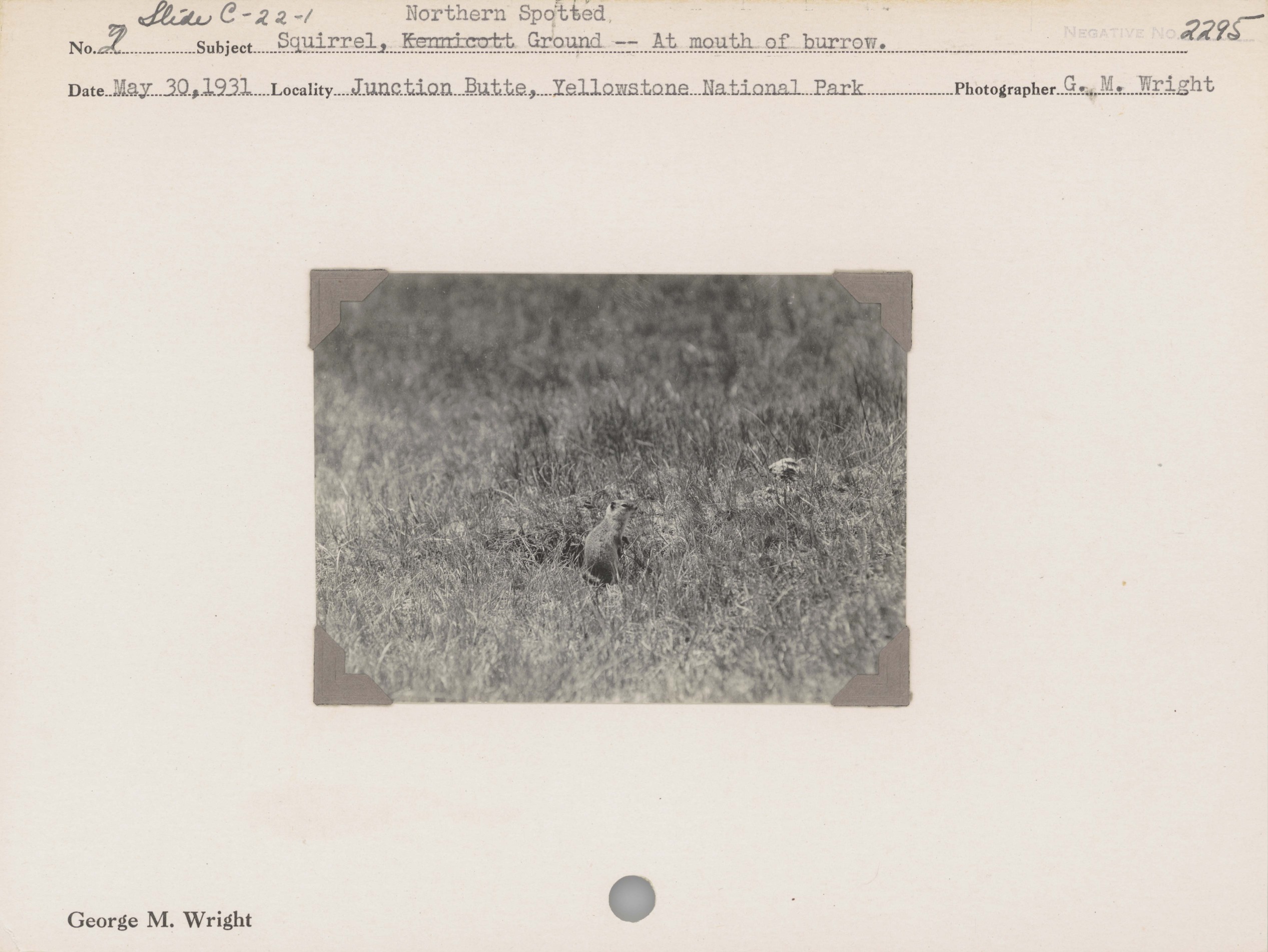 Squirrel, Northern Spotted Ground--At mouth of burrow. Locality: Junction Butte, Yellowstone National Park. Negative #: 2295