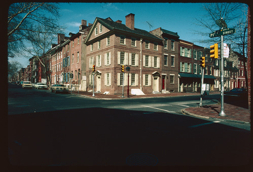 Kosciuszko House. Exterior. East and south side. Looking northwest from southeast corner of 3rd & Pine Streets. Traffic light red.