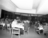 Men and women eating dinner at retirement party for Superintendent Paul R. Franke. Party held at the Driftwood Lodge, Springdale, Utah. ; ZION Museum and Archives Image ZION 9747 ; ZION 9586
