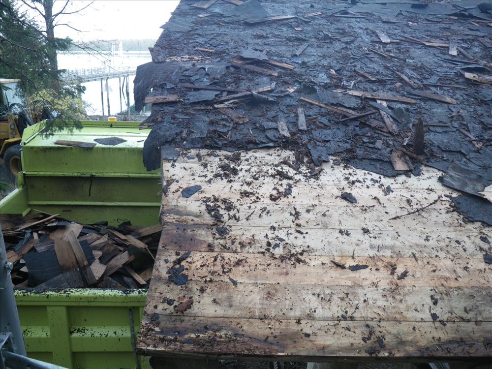 Replacing deteriorated decking and shakes on rear of canoe shelter