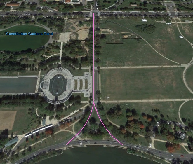 Aerial view of Indepence Ave, 17th St, and West Tidal Basin