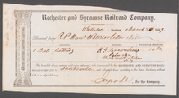 Rochester and Syracuse Railroad Company shipping receipt to Richard Pell Hunt