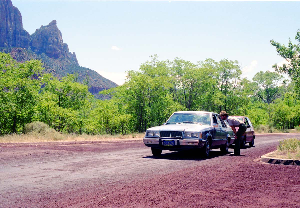 Color Photos of the parks 72nd anniversary celebrations- cake cutting, barbecue, speakers. Superintendent Harold Grafe serving cake. ; ZION Museum and Archives Image 800_21_01022 ; ZION 15933