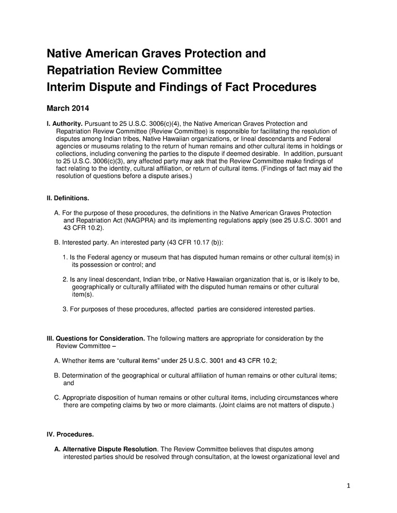 Request for finding of fact or dispute resolution to the NAGPRA Review Committee