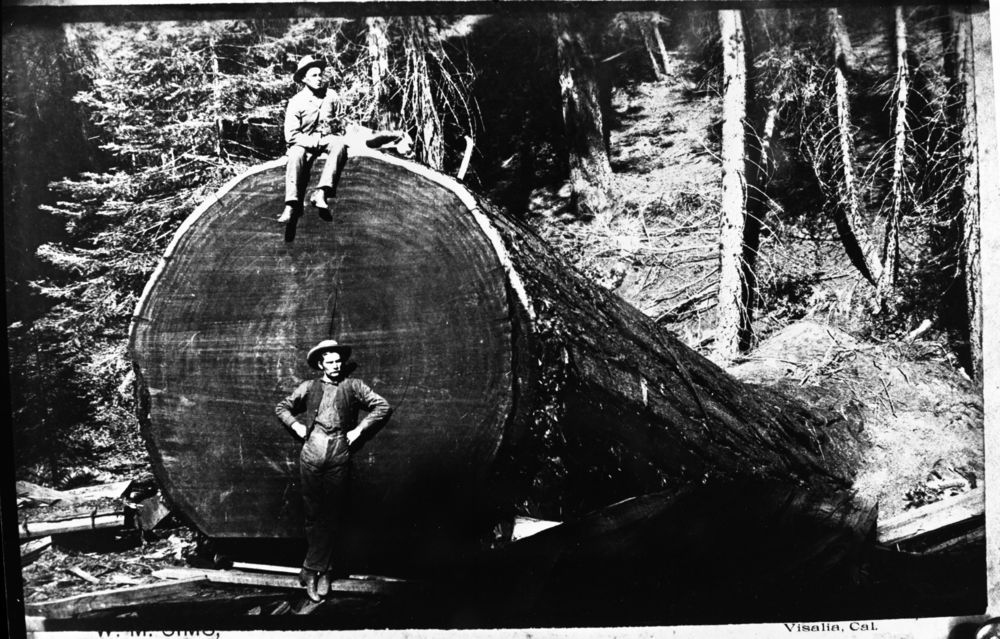 Logging, felled giant sequoia 1880's. Individuals unidentified.