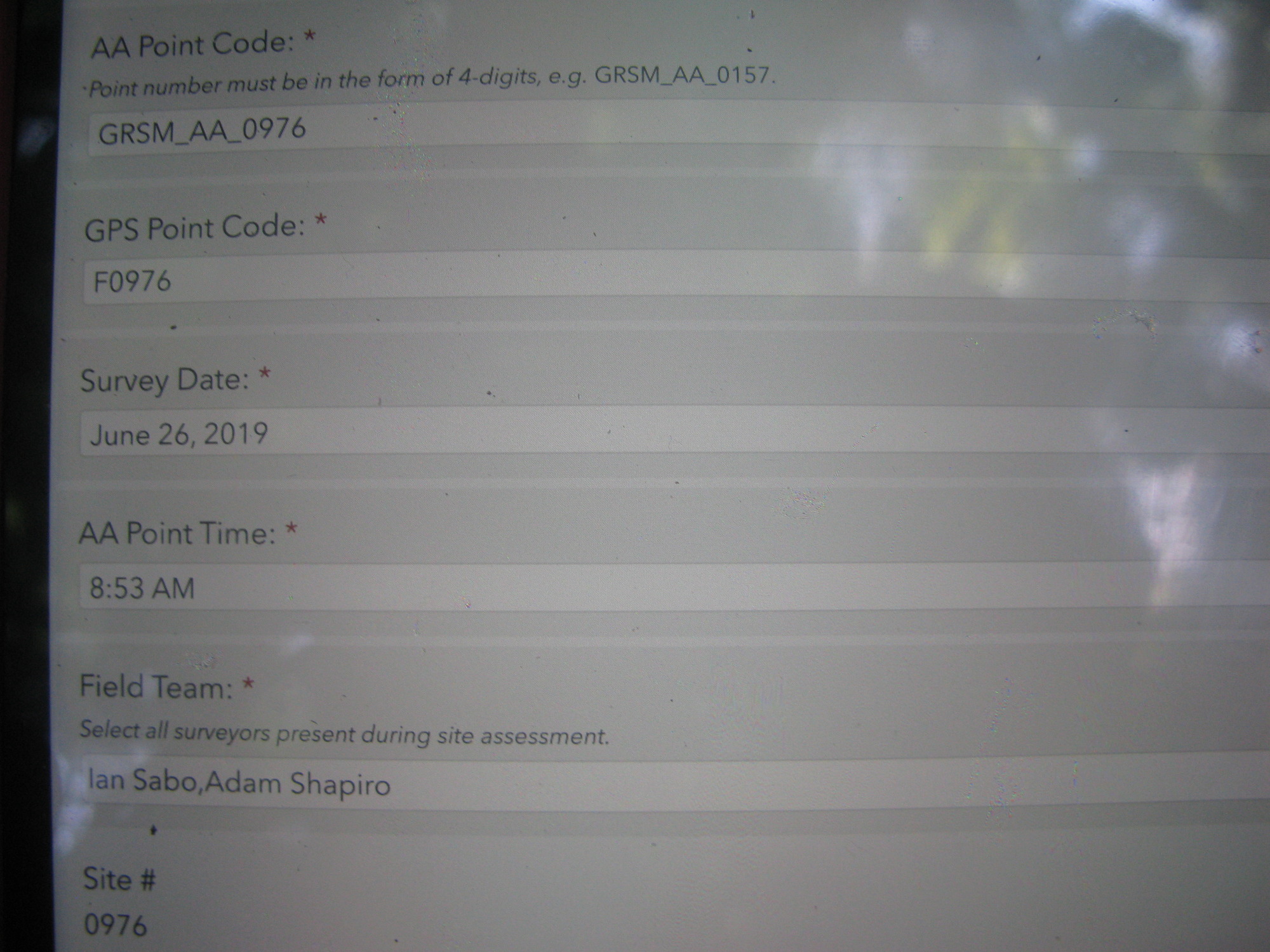 GRSM Accuracy Assessment. Plot Code: GRSM_AA_0976_1