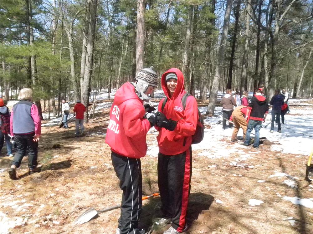 Benzie Central 9th graders plant trees on Earth Day 2011