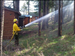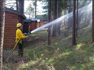Wetting down fuels near structures during exercises near Triangle X Ranch, May 2002.
