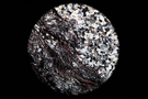 Circular microscopic image of rock structure.