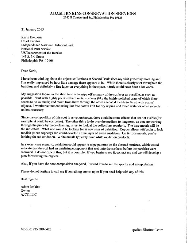 Museum collection condition assessments for soot damage following 2nd Bank fire