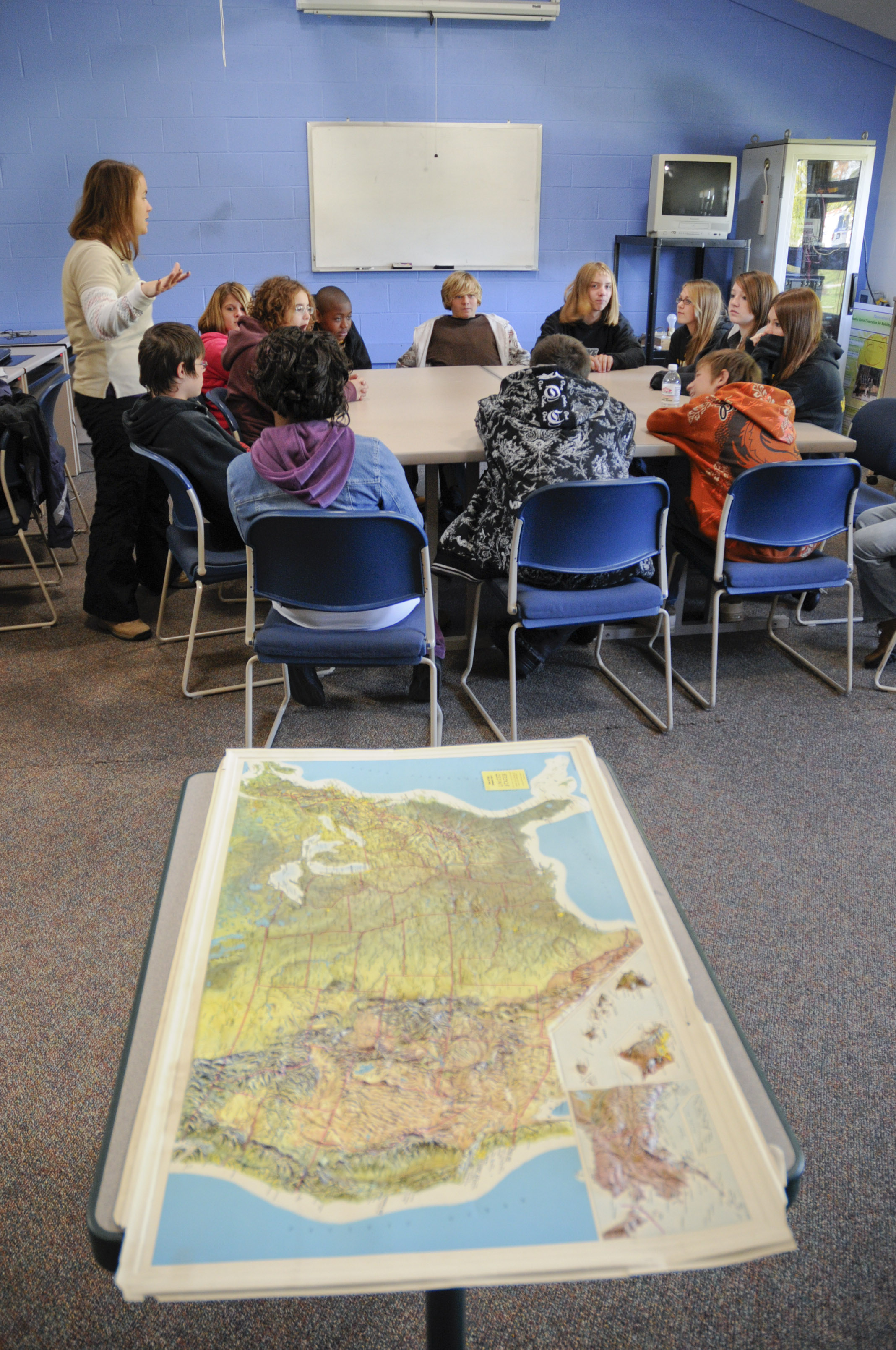 Throughout the Level 2 curriculum, middle school students have been learning about low-impact development (LID) and applying it to planning a residential housing development on specific pieces of land bordering the national park. Here they are finalizing their site development ideas and practicing their presentations for the Planning Commission meeting on the final day. || The Cuyahoga Valley Environmental Education Center's residential program provides fourth through eighth grade classes an overnight educational experience that integrates science, nature study, environmental issues, and the arts. Students learn natural history and the concepts of watershed, biodiversity, and habitat. In addition, environmental issues and the process of environmental decision-making are explored. The curriculum is designed to meet state standards and teach proficiency skills, especially in science and social studies.