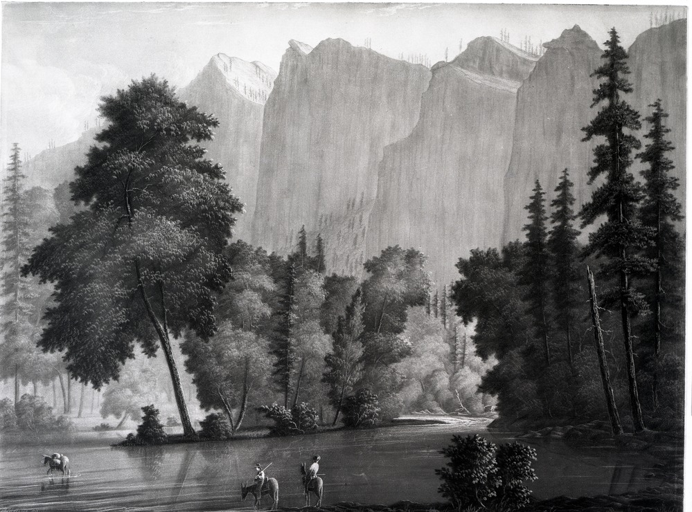 "The Ford, Entrance to Yohemity Valley California" Pencil Sketch