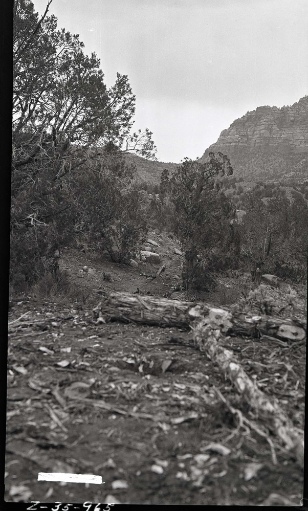 Hop Valley drift fence as a record of construction. ; ZION Museum and Archives Image 005_02_011 ; ZION 7994