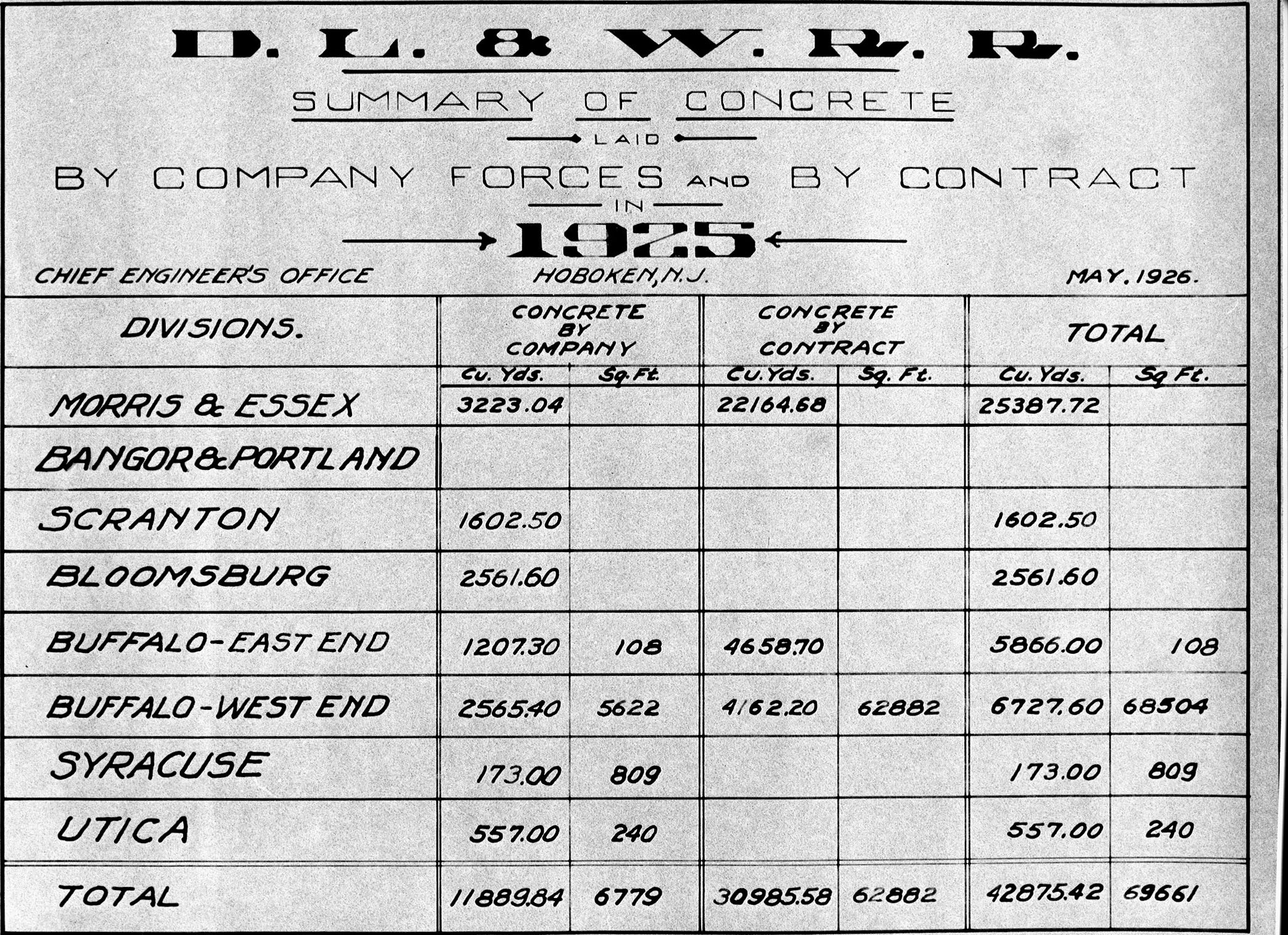 0695.BA#001--(GROUP 2) Summary of concrete laid by company forces and by contract broken down by division by year--1900 thru 1931