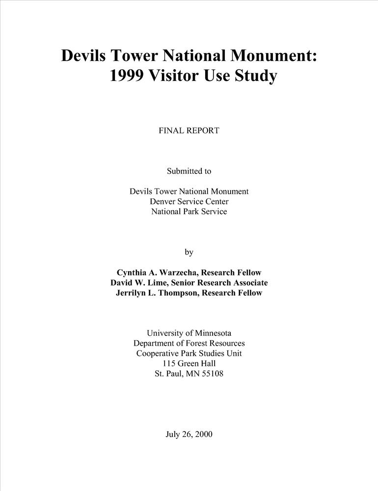 Devils Tower National Monument: 1999 Visitor Use Study