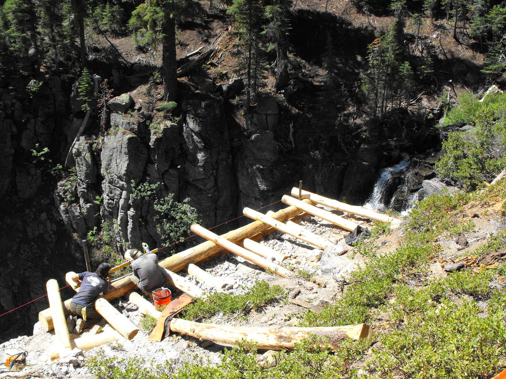 Trails Crew Working at Kings Creek Falls overlook.