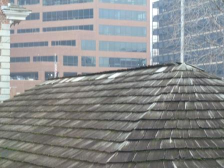East Wing of Independence Hall south elevation taken 1/29/13, showing roofs to be replaced.