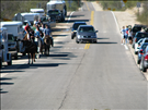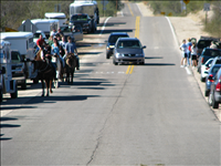 Westbound view of Speedway Blvd. from near trailhead; vehicle congestion, horses and people in road, hazardous conditions