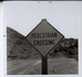 Left Turn Ahead' sign in Kolob Canyon. ; ZION Museum and Archives Image 007.01.01-71of73 ; ZION 15933