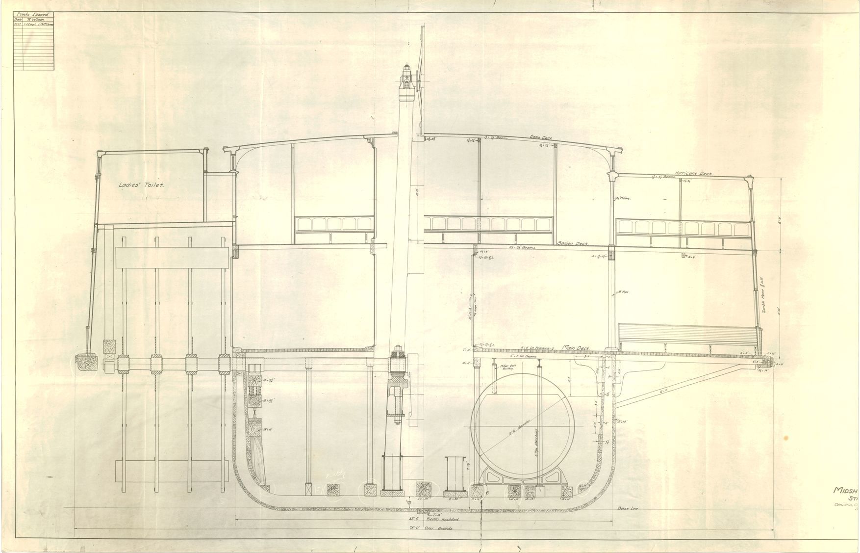 Plans package dated 1922-1996 for the 1890 side-wheel ferry Eureka.