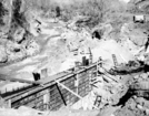 Lower end of diversion of Virgin River to enable crew to place willow spiders for stream bank protection. ; ZION Museum and Archives Image ZION 10318 ; ZION 15933