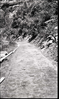 Narrows Trail construction, station 7-00, looking north, with base course of gravel ready for 1/4 to 1/2 inch screenings. ; ZION Museum and Archives Image 008_03_019 ; ZION 13597